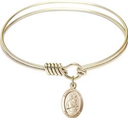 Saint Gianna Gold-Plated Smooth Metal Round-Eye Hook Bangle with Saint Gianna 1/10 - 14k Yellow Harmony Gold-Filled Medal [1/2-inch x 1/4-inch wide]. Bracelet Size 6.25 inches. Made in USA. Touched to Saint Gianna's Second-Class Relic before shipping. Tan Gift Box.
