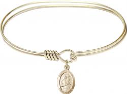Saint Gianna Gold-Plated Smooth Metal Oval-Eye Hook Bangle with Saint Gianna 1/10 - 14k Yellow Harmony Gold-Filled Medal [1/2-inch x 1/4-inch wide]. Bracelet Size 7 inches. Made in USA. Touched to Saint Gianna's Second-Class Relic before shipping. Tan Gift Box.