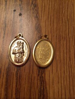 Zaimic Gold-Dipped medal depicting Saint Gianna holding Mariolina (front side) with PRAY FOR US on backside of medal on a jump ring. Each medal will be touched to Saint Gianna's Second-Class Relic before shipping to you. Medal made in Italy. Quantity=50 medals