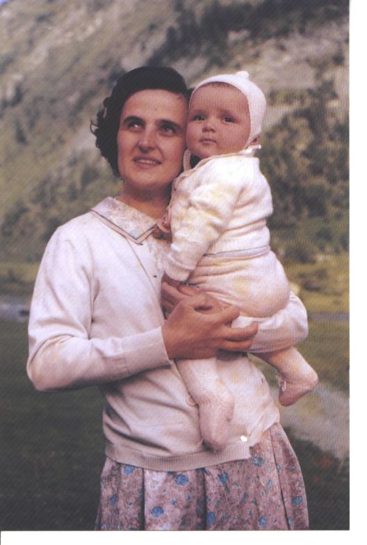 5"x7" picture of St. Gianna holding Mariolina. Taken in the mountains by her husband Pietro in Cardboard Picture Frame. Touched to Saint Gianna's Second-Class relic.