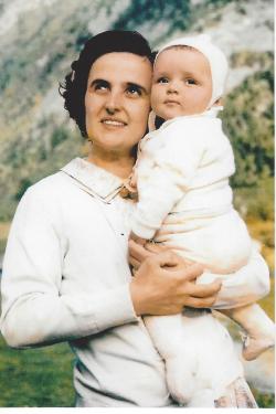 4"x6" Picture of Saint Gianna Beretta Molla holding her oldest daughter, Mariolina. Taken in the mountains by her husband Pietro. Cardboard Photo frame. Touched to Saint Gianna's Second-Class relic.