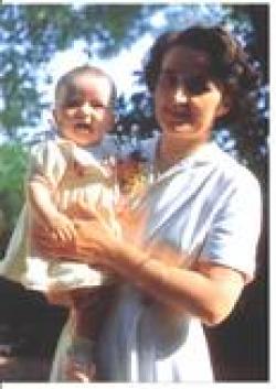 4"x6" Picture of Saint Gianna Beretta Molla holding her oldest daughter, Mariolina. Taken in the mountains by her husband Pietro. Cardboard Photo frame. Touched to Saint Gianna's Second-Class relic.