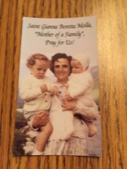 Saint Gianna is holding her two oldest children, Pierluigi and Mariolina. She was proclaimed the Saint of the Family by Pope John Paul II at her canonization on May 16, 2004. This magnet will be touched to Saint Gianna's Second-Class Relic before shipping. Size 3.5"H x 2"W