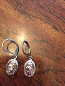 Saint Gianna Sterling Silver Medal (3/4"x1/2") - Made in USA) on Stainless Steel 14mm (1/2" drop) Leverback Earwire. Sold as a Pair of earrings. Earrings will be touched to Saint Gianna s Second-Class Relic before shipping.