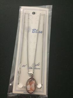 Silver-tone Picture medal of Saint Gianna holding daughter, Mariolina, (1"L x 3/4"W) Made in Italy on 20-inch heavy curb rhodium-plated chain 2.90mm with lobster claw clasp. Item will be touched to Saint Gianna's Second-Class relic before shipping.