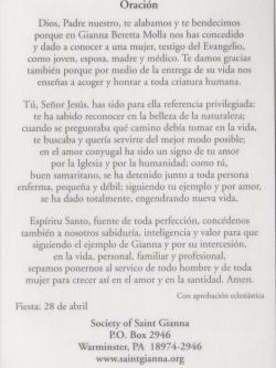 Saint Gianna Beretta Molla Prayer Cards Spanish Qty=25